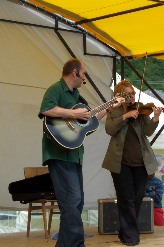 gitárral, hegedűvel, ukulelével, kazoo-val stb.