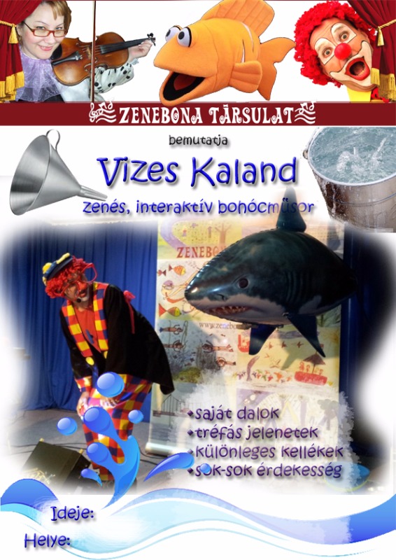 A 2012/2013-as évad előadásának központi témája a víz. Ez az az anyag az életünk lételeme, és az ami egyben óriási varázserővel bír a gyerekek életében. Felhangzik a Pocsolya dal és vele a felhívás: mindenki vegyen gumicsizmát, és gyerünk pocsolyázni! További dalaink Laliponty kalandjáról, vagy Cseppkéről a vízcseppecske nagy utazásáról szólnak. Sanyi bohóc bemutatja hogy varázserejével hatalma van a víz felett is. Az előadás "mélypontja" amikor az óceánba lemerülünk, és megnézzük kik élnek ott lent de mindenkiben meghűl a vér, amikor megjelenik a nagy kék cápa fölöttünk. Mindenkire sok móka és kacagás és egy nagy vizes kaland vár, Cinivel és Sanyi bohóccal!